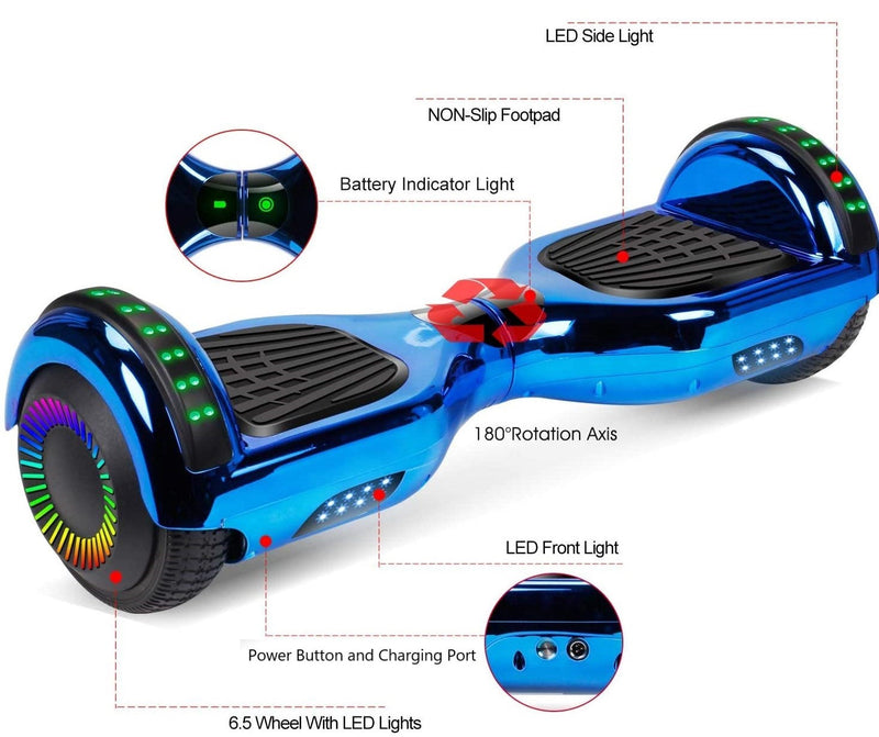 GlareWheel Chrome Blue Hoverboard With Built-In Bluetooth Speaker- UL2272 Certified