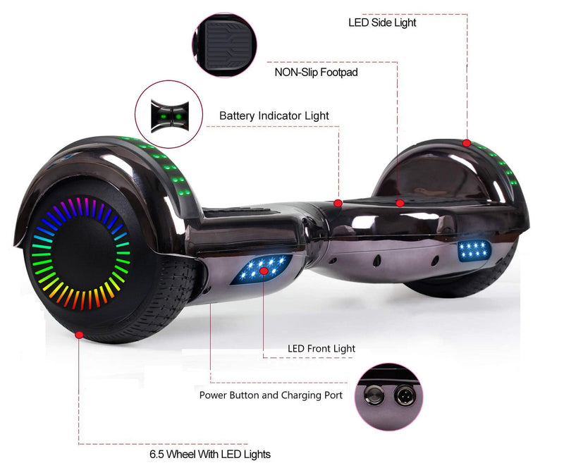 GlareWheel Chrome Black Hoverboard With Built-In Bluetooth Speaker- UL2272 Certified