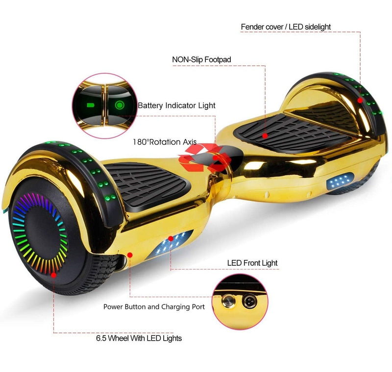 GlareWheel Chrome Gold Hoverboard With Built-In Bluetooth Speaker LED Light...