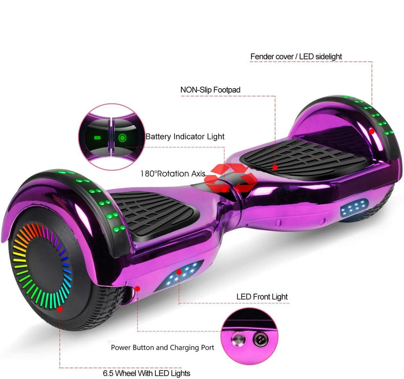 GlareWheel Chrome Purple Hoverboard With Built-In Bluetooth Speaker- UL2272 Certified